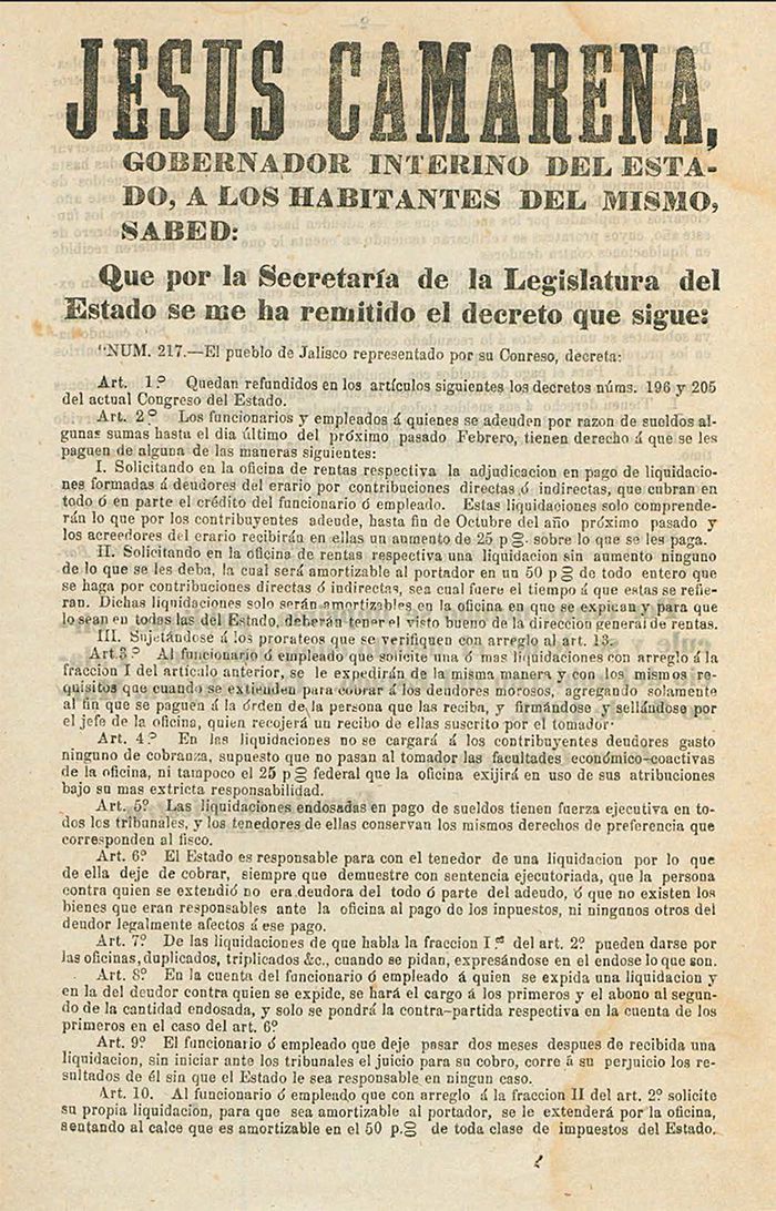 Previous article: Aurelio Hermoso, substitute governor, on liquidaciones, Guadalajara, 9 January 1871