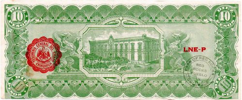'PARK OF RED ROCKS / RED ROCKS PUEBLO IN / COLORADO' known on $10 dos caritas.