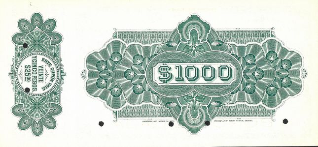 However, it was not until almost a year later, on 30 December 1903, that the bank returned the specimen with its amendments because it had taken various attempts to get federal government’s approval. The bank stated that on the face of the bond and at the foot of the figure, the words “BONO DE CAJA” had to appear in large letters and red ink, with the same words at the top in small type. This was required by the government in order that the bonds could not be mistaken for bank notes. The bank asked that the ABNC make the changes suggested and return the specimen immediately, in order that it could again send it to Mexico City for approval and then back to the ABNC to do the work, as it would like to lose as little time as possibleibid..
