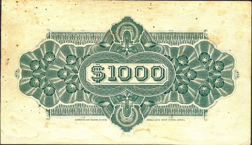 The ABNC returned the model on 13 January 1904, but the matter then fell into abeyance for three years. Finally, on 6 May 1907 the bank returned the model and ordered 1,000 each of $100, $500 and $1,000 denominations. The $100 bond was to carry a coupon for $2.50, the $500 one for $12.50 and the $1000 one for $25.00. The bank asked the ABNC to make an effort to make the bonds ready within a very short time, as the time allowed by the government to put them into circulation was very short. In reply to a query the bank confirmed, on 21 May, that it wanted the bonds to be in three series (A to C) and each to have a single coupon. The ABNC sent face and back proofs on 29 June and the bank approved them on 4 July and requested the bonds to be shipped by Express as soon as they possibly could, as the bank was greatly in need of them. Finally, on 26 July the ABNC sent one box via Wells Fargo & Company Express, containing the 3,000 bondsibid.