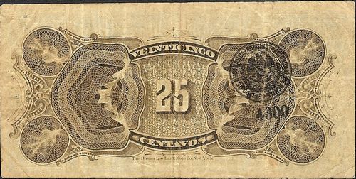 At its meeting on 2 May the local council discussed the Governor’s reponse. The Presidente Municipal said that as the only bank in the city was that owned by Samuel Miller, they needed to talk to him and the meeting was suspended whilst two members went off to ask him but they returned saying that they had found the bank closed so the matter was left in the hands of the Presidente Municipal. At the meeting on 9 May Porras reported that he had arranged with Miller for the bank to issue $5,000 in 1c, 5c and 10c notesibid..