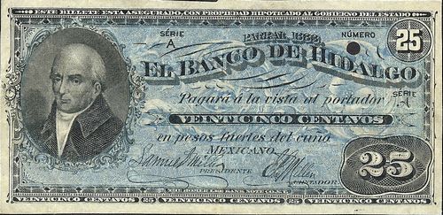 SECOND OLDEST BANK BILL ISSUED IN STATE. The Banco Minero has taken in a $10 bill of the Banco de Hidalgo in Parral, the first bank ever started in this state. This bill is No 2, therefore the second bill ever issued. Its date is 1883. The bank was founded by Enrique Miller, a wealthy hacendado who died here a number of years ago. His descendents have had on deposit in the Banco Minero for a number of years money to buy one or more of these old bills which they wanted to get hold of and hold in memory of the founder of the bankChihuahua Enterprise, 10 August 1907.