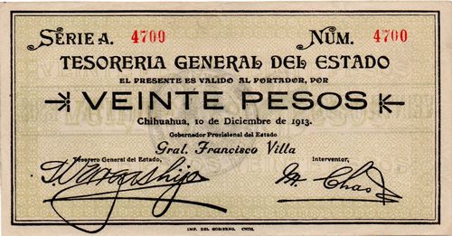 In March 1914 the El Paso HeraldEl Paso Herald, 27 March 1914 reported that local businessmen were doing a bit of expert money examination on their own initiative. Having obtained one of the notes that has been restamped in Ciudad Juárez, they compared all money that was offered them and if it compared well they accepted it in payment for goods and in exchange for American money at the prevailing rate. There were many ways to distinguish between bad and good rebel money. By placing two of the notes side by side, the difference could be readily seen but the only difficulty was is in telling which was genuine and which was bogus. The newspaper said that the $20 sábanas had been most widely counterfeited and the differences it listed were: