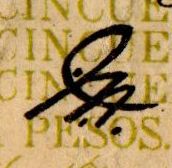 | Red 'No.' after 'SERIE A' and red 'No.' at right | No lettering at left and black 'Núm.' at right (this suggests that the early genuine 'Núm.' notes had disappeared from circulation) |