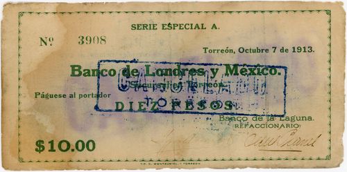 Banco de la Laguna drawn on the Banco de Londres y México