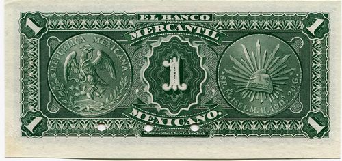 M282c $1 Banco Mercantil Mexicano overprinted 'PAGADERO EN LA SUCURSAL DE VERACRUZ'