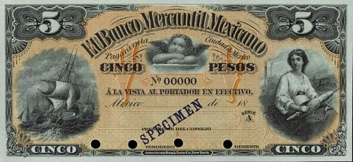 M289s $1,000 Banco Mercantil Mexicano specimen