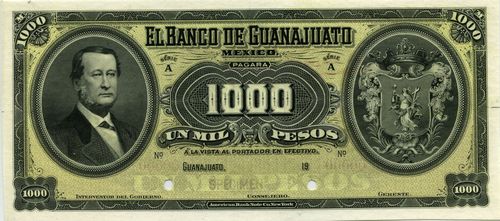 The American Bank Note Company produced the following notes. They engraved special vignettes of Manuel DobladoDoblado was born in San Pedro Piedra Gorda, Guanajuato (now Ciudad Manuel Doblado) in 1818. He was a lawyer and professor at Guanajuato State College. He was appointed governor in 1846 but could not occupy the position because he did not have the required age, being only 28 years old at the time.