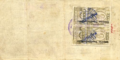 In his August 1915 report on local issues to the Secretaría de Gobernación in Veracruz, Arturo Lazo de la Vega records that the “Blanca y Anexas”, “Maravillas y San Francisco”, “Real del Monte y Pachuca” and “San Diego”, had issued cheques for $1, $5, $10, $20 and $50 but does not know the amounts issuedAGN, Fondo Gobernación Periodo Revolucionario, caja 93, exp. 36, folletos 8 Secretario general L. de la Vega to [ ], Pachuca, 20 August 1915. In response, on 9 September the Secretaría de Gobernación replied that all these issues should be withdrawnAGN, Fondo Gobernación Periodo Revolucionario, caja 93, exp. 36, folletos 8.
