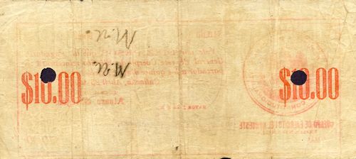 These were followed by a further series ($1, $5, $10, $20 and $50) dated 1 May 1914 and now no longer giving a period in which they would be redeemed. The first series reportedly had a total value of 50,000 pesos whilst the amount of the second is unknown.