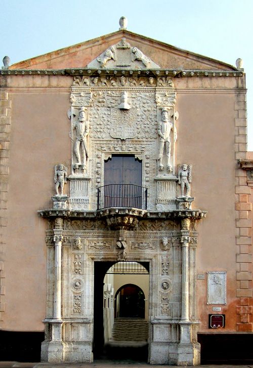 The vignette is of the front of the Casa de Montejo on the south side of the Plaza Grande in Merida. This building was constructed between 1542 and 1549 by the Spaniards who conquered the Yucatán, Francisco de Montejo and his relatives, as a family residence. On the façade the conquistadors with halberds are standing on the heads of defeated Indians. The mansion served members of the Montejo family until 1970: today it is owned by the Fomento Cultural Banamex and houses a museum.