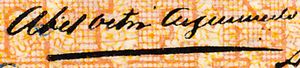 The $100 notes consequent to Argumedo’s decree of 26 February are dated 1 March 1915 and carry the signatures of Argumedo as president, Juan Villafaña as cashier (cajero) and T. O. Waterland de Vignier as general manager.
