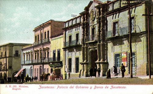 The Banco de Zacatecasfor a detailed history of the bank, see María Guadalupe Noriega Caldera, El Banco de Zacatecas: regulación, organización, operaciones y administración (1891-1916), Universidad Autónoma de Zacatecas, December 2018, granted a concession on 3 March 1891, was founded on 25 May 1891 by Jesus and Antonio García, Rafael Villalpando and Luis Macías with a capital of $600,000 and began operating on 8 December of the same year. Most of the founding members were men of lineage, well-known business men, merchants and land ownersThe first board were Genaro García, as presidente, Luis Macías, Rafael Villalpando, Enrique Hatchandy, Cayetano Arteaga, Jaime G. Würst, Leopoldo Viadero, Francisco Pérez, Agustín G. González and Juan Breña. Unsurprisingly, over a dozen of the shareholders also owned shares in the Compañía Guanajuatense-Zacatecana which was the last private enterprise that leased the Zacatecas Mint (1876-1895).