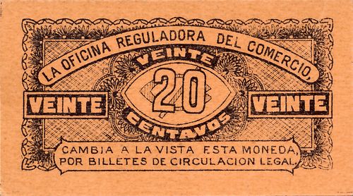 In Zacatecas the Oficina Reguladora del Comercio predated the Comisión Reguladora as on 9 October 1915 Donaciano López took over as jefe of the OficinaPeriódico Oficial, Año II, Tomo II, Núm. 11, 23 October 1915. A series of cartones issued by the Oficina, exchangeable at sight for legal tender, was obviously to counter the shortage of small change.
